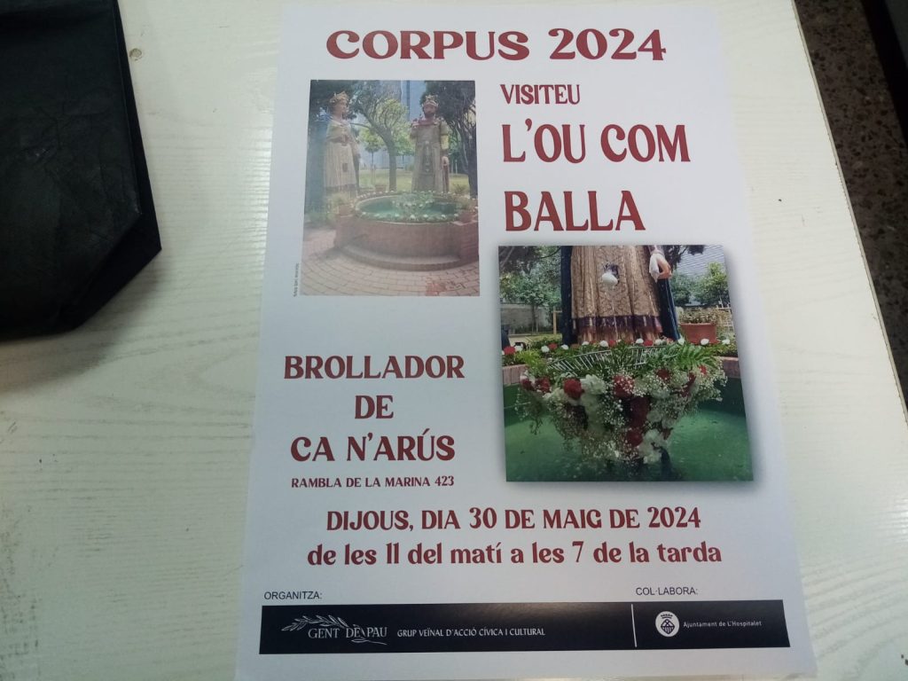 La celebració del Corpus 2024 i ‘l’ou com balla’, organitzar per l’entitat Gent de Pau, de L’Hospitalet, es farà igual que l’any passat, als jardins de Ca n’Arús.