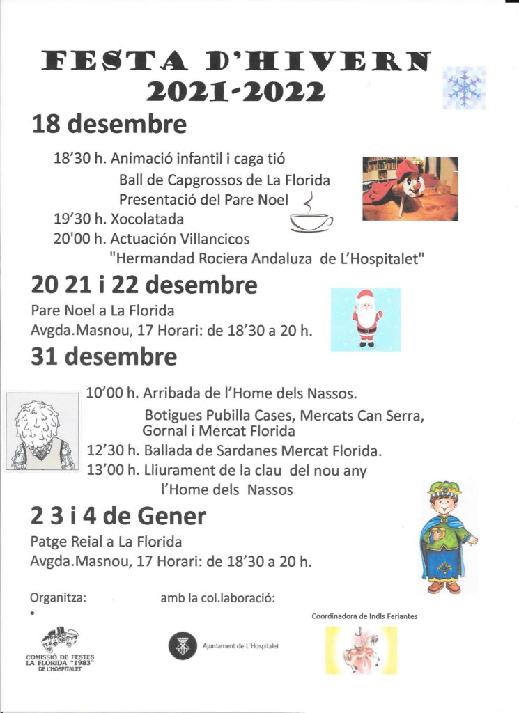 Actualidad, L'Hospitalet Arriba la Festa Major d’Hivern al barri de la Florida de L’Hospitalet Caga Tió, Xocolatada, animació infantil, el Pare Noel… Redacción 17/12/2021 Etiquetas Barrio de La FloridaFesta Major d’HivernFesta Major de La Florida