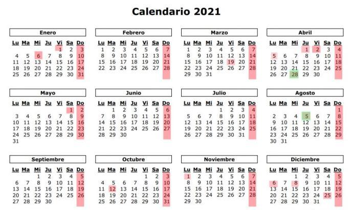 La principal novedad del calendario laboral del 2021 es que vuelve un gran puente de la Constitución, al caer el 6 de diciembre en lunes y el 8 en miércoles. Además, el hecho de que Sant Joan sea jueves y el 12 de Octubre martes abre la posibilidad de hacer puente en Catalunya esos fines de semana. Hay tres festivos en sábado: el 1 de Mayo, la Diada y Navidad.