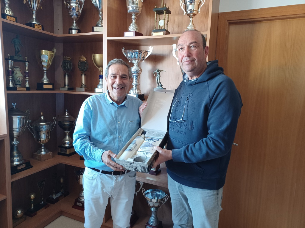 La Rapitenca entregando un obsequio de recordatorio al presidente del CE L’Hospitalet.