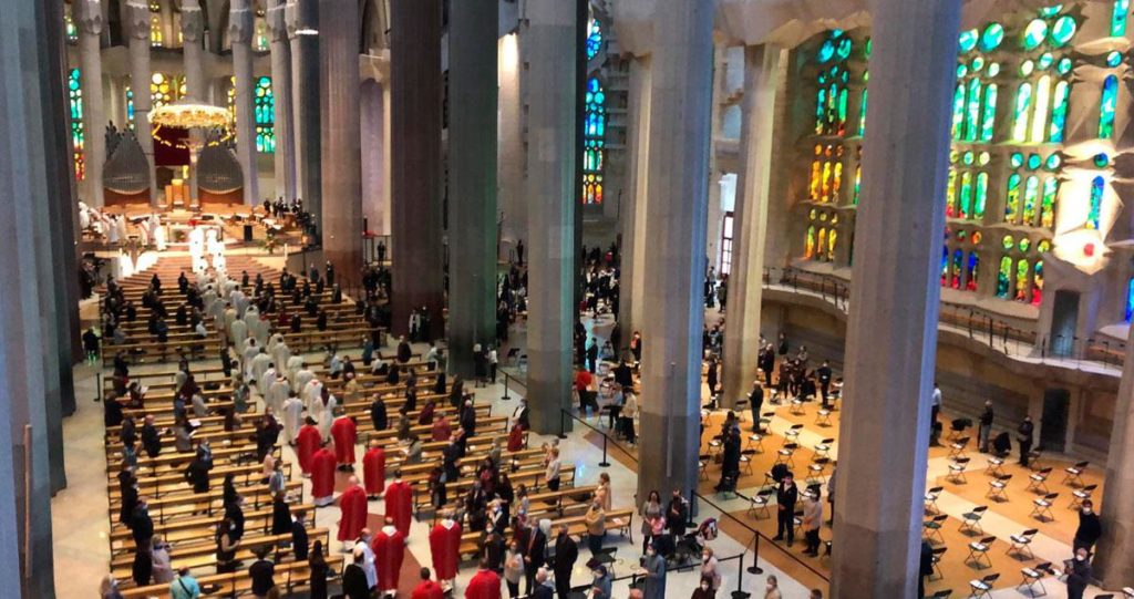 La Sagrada Familia acoge una concurrida misa con religiosos venidos de toda Cataluña y del resto de España