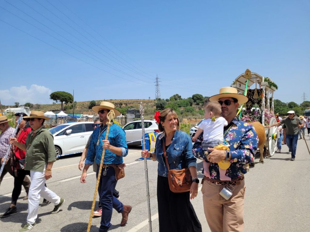 Núria Marín, alcaldesa y candidata del PSC, al Ayuntamiento de L’Hospitalet, ha participado en la fiesta del Roció, con un sol de justicia.