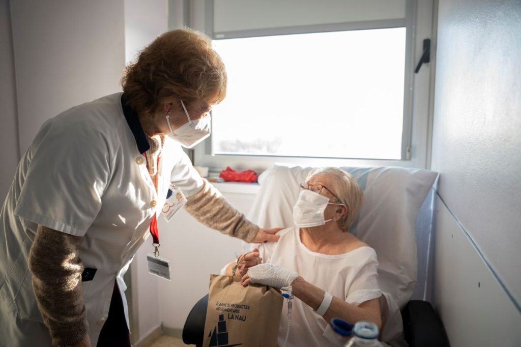 Como ya es tradición, el Hospital de Bellvitge tuvo un gesto especial con las personas ingresadas, haciéndolos llegar un obsequio para desearlos felices fiestas y una rápida recuperación. La entrega fue a cargo de personas voluntarias de la asociación Azinnia, entidad que colabora desde hace años con el centro en tareas de acompañamiento social.