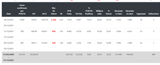Durante las celebraciones de las fiestas navideñas se recomienda limitar las reuniones sociales con familiares y amigos, los actos públicos en los que se puedan producir aglomeraciones, así como la protección especial de las personas vulnerables. En Catalunya los pacientes ingresados en UCI, ya ha superado los 400, un muy mal dato.