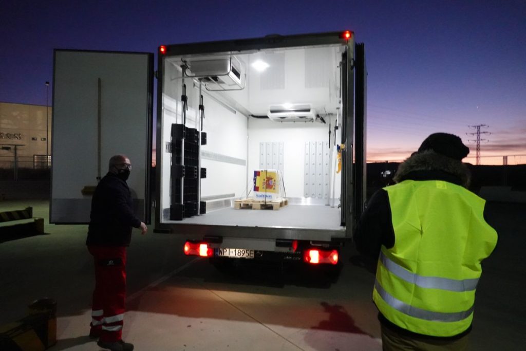 Esta es la primera entrega de la vacuna de Pfizer a la que seguirán cada lunes partidas de dosis para distribuir entre las comunidades autónomas que, salvo excepciones como Aragón, no han desvelado dónde las guardarán.