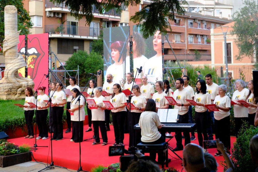 La ceremonia ha comenzado con la actuación musical de la coral Veus del Món, formada por nuevos ciudadanos y resultado de la colaboración entre la Escuela Municipal de Música – Centre de les Arts y el Consorci para la Normalización Lingüística de L’Hospitalet, la cual ha interpretado canciones en catalán.