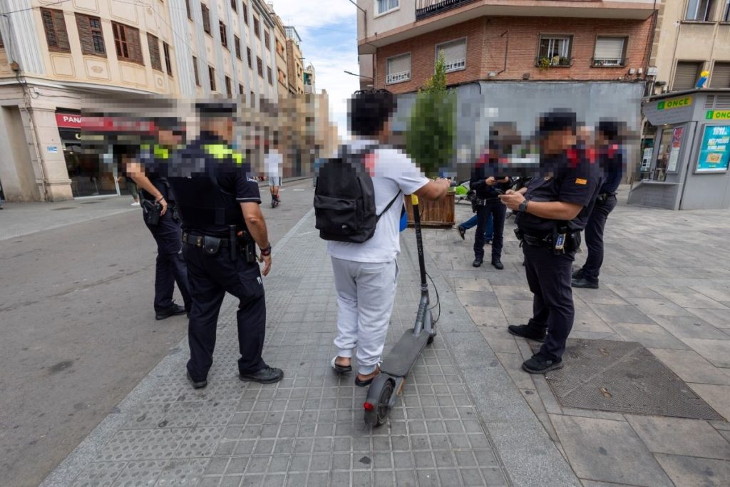 La Guardia Urbana de L’Hospitalet, los Mossos d’Esquadra y la Policía Nacional realizaron este martes un control exaustivo de patinetes en los alrededores de la plaza Española en el barrio de Collblanc.
