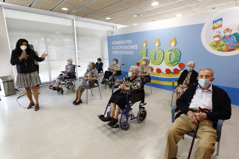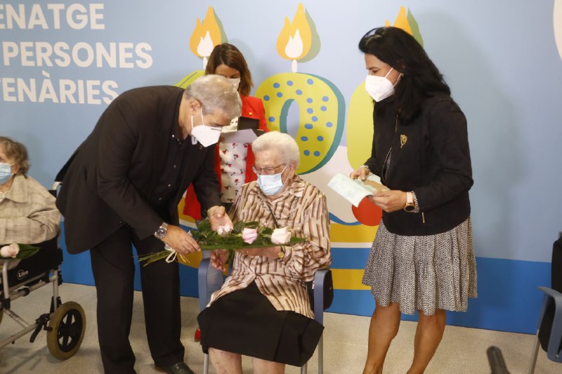 De las personas que este año hacen 100 años o más en L’ Hospitalet, han asistido al acto 7 mujeres y 1 hombre. ¡Muchas felicidades a todos! Han recibido una imagen de l’Acollidora, la medalla centenaria y un ramo de flores.
