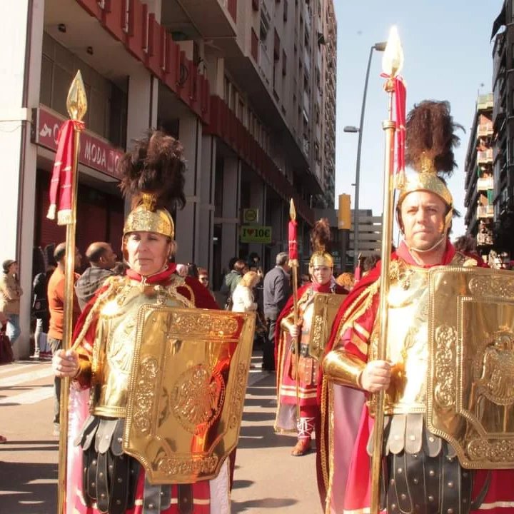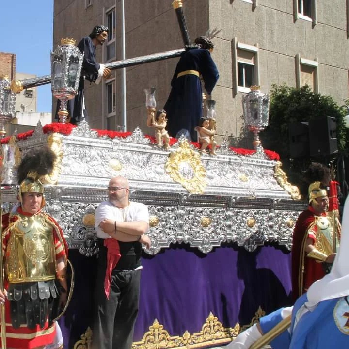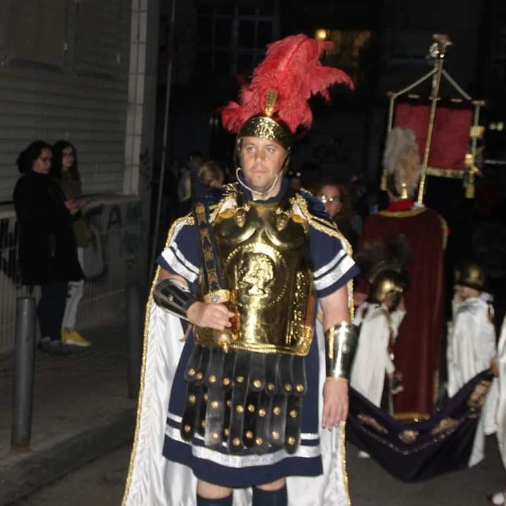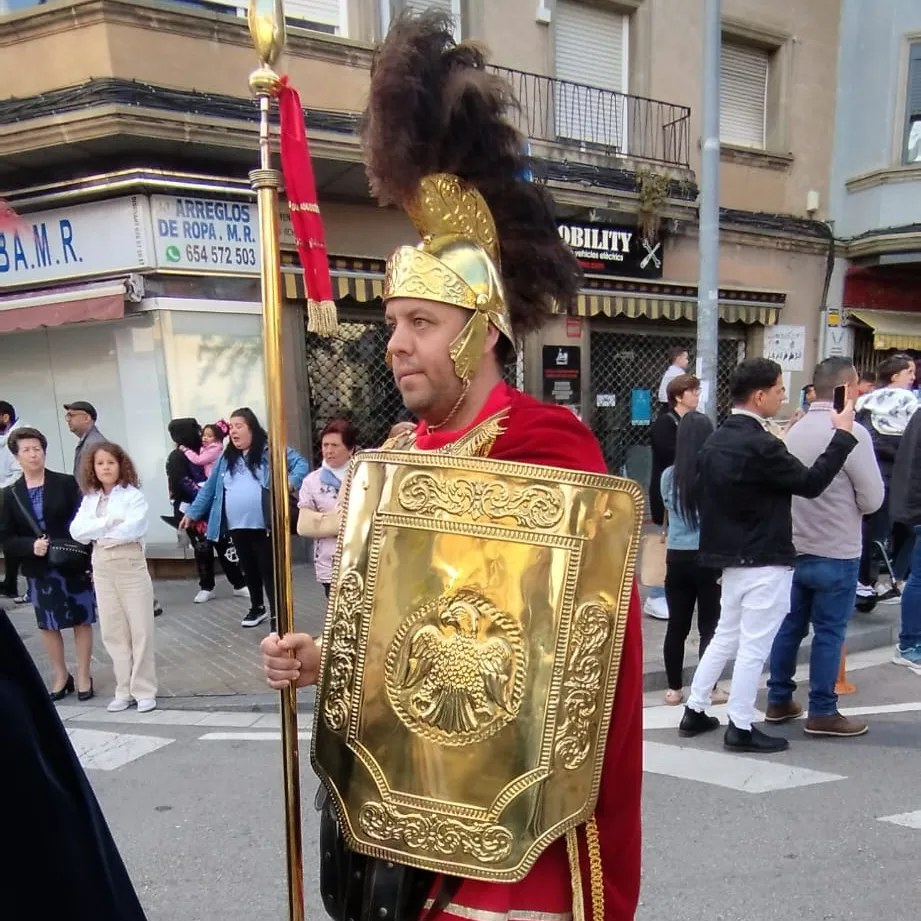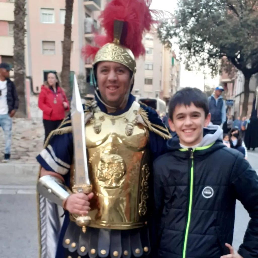 Raúl, nació en 1980, y desde pequeño le fascinó el paso de la procesión, especialmente la figura de los romanos, un amigo de su clase se apuntó, y a él le faltó tiempo para hacer lo mismo.