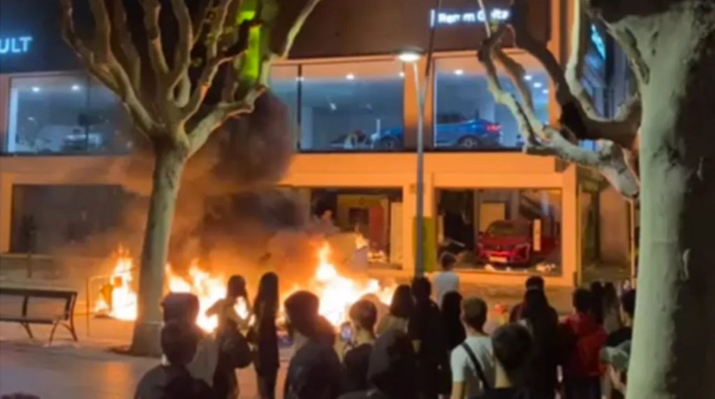 El grupo de vándalos destrozaron mobiliario público, saquearon aparadores de establecimientos, y se enfrentaron a los Mossos d’Esquadra.