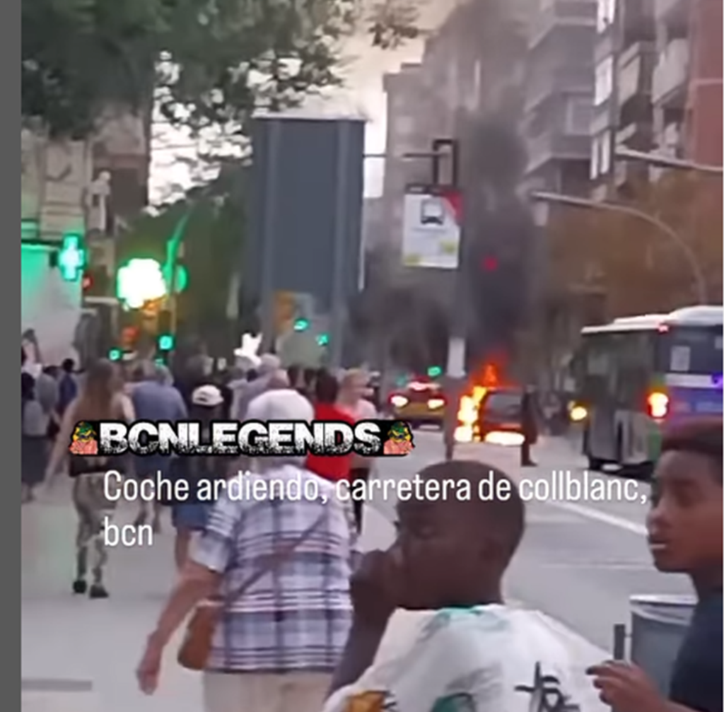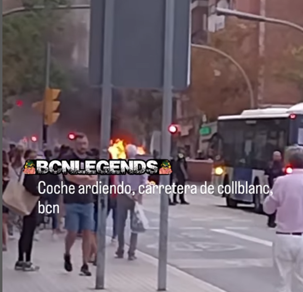 El incendio de un vehículo en la carretera Collblanc, en L’Hospitalet este martes, causo expectación, ya que se produjo en plena hora punta cuando la vía estaba llena de personas, y de coches.