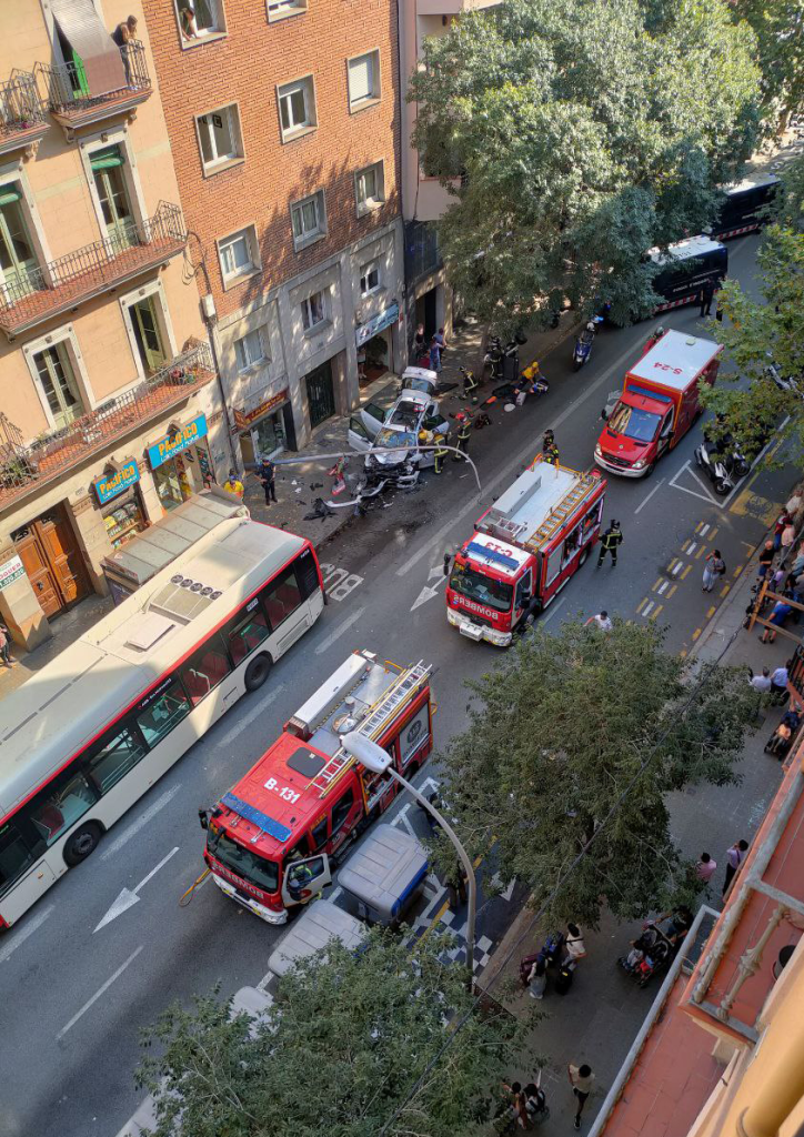 Un autobús y un coche se han visto implicados en un accidente aparatoso en la calle de València, entre los de la Marina y Lepant, este jueves, según difundió Betevé.