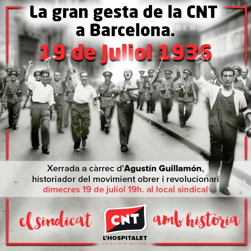 Aquest dimecres dia 19 de juliol, un recorregut per la memòria de les fites col.lectives, a càrrec d’Agustín Guillamón, historiador de la clase obrera i revolucionaria, autor d’obres com: