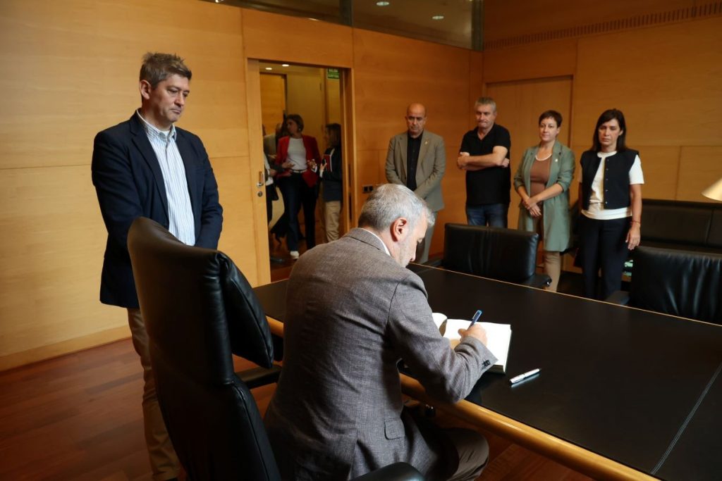 Acto seguido, Collboni saludó a los portavoces de los grupos municipales y firmó en el Libro de Honor de la ciudad.