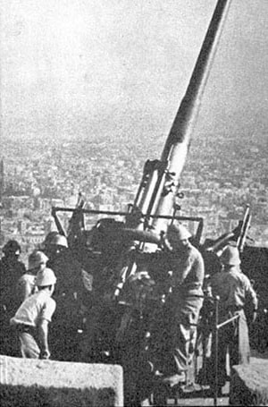 El bombardeo en alfombra provocó alrededor de 800 muertos, más de un millar de heridos y la destrucción total de unos 50 edificios. La ciudad contaba como única defensa una amplia red de refugios subterráneos y este sistema de baterías antiaéreas instalado por el Gobierno de la República.