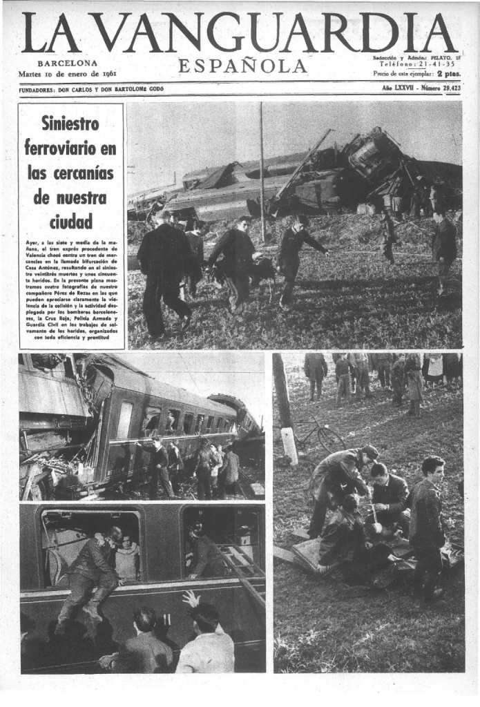 El Dilluns 9 de gener de 1961, a les set i vint-i-cinc minuts del matí, va tenir lloc en la bifurcació d’agulles de Casa Antúnez, de L’Hospitalet de Llobregat, un tràgic xoc frontal entre un tren de mercaderies que provenia de l’estació de Sants i un tren exprés procedent de València, amb destinació a Barcelona.