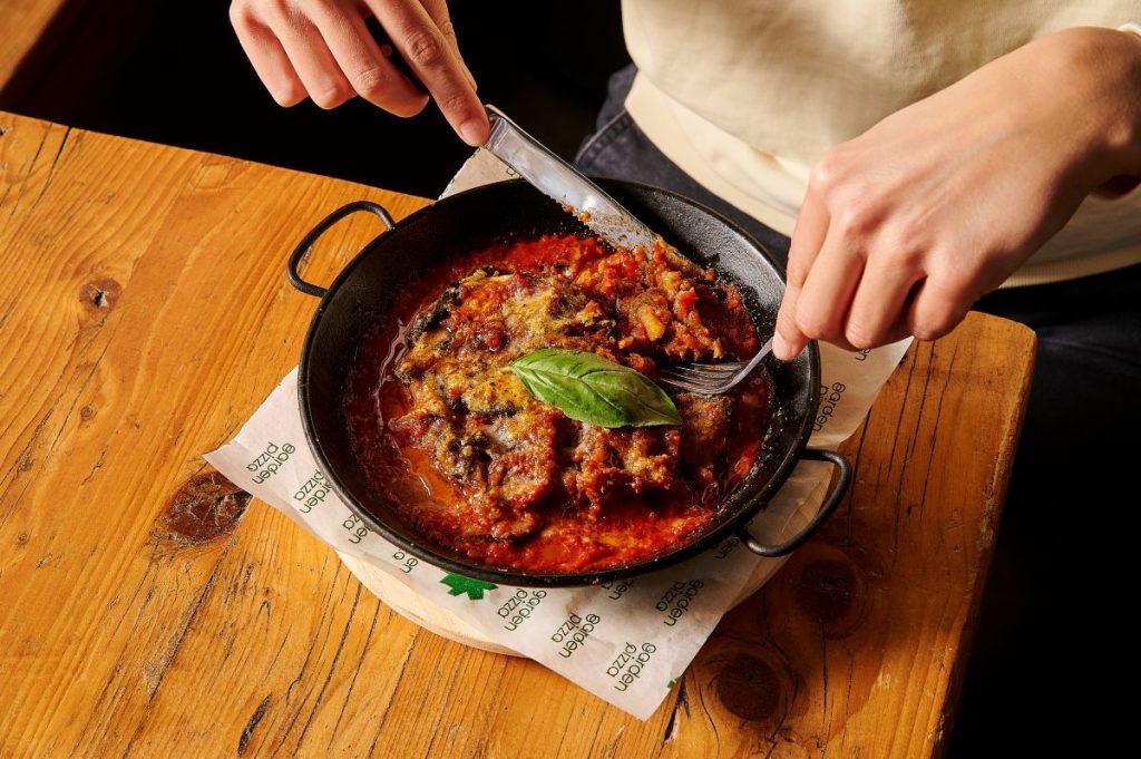 Una altra incorporació clau és la parmigiana d’albergínia, un plat que Garden sempre havia volgut tenir a carta i que ara troba el moment ideal dins d’aquest canvi profund. Elaborada amb salsa de tomàquet casolana i parmesà, gratinada al forn de pedra, connecta directament amb l’essència mediterrània i italiana de Garden.