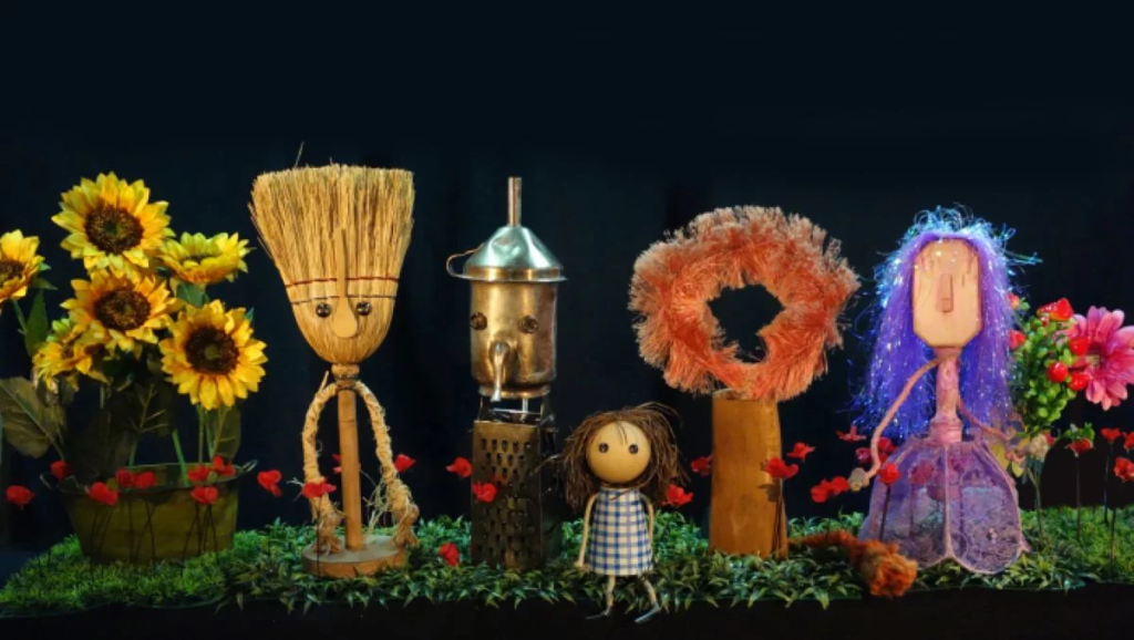 Escombres, pals de fregar, estris de cuina i altres objectes donen vida a aquesta divertida i suggeridora versió del Mag d’Oz. Una nena que desitja tornar a casa seva, un espantaocells que vol tenir un cervell per poder pensar, un home de llauna que anhela tenir un cor per poder sentir i un lleó poruc que vol tenir valor, emprenen un viatge cap a la ciutat Maragda a la recerca del Mag d’Oz. Un viatge en què els seus protagonistes aprendran el valor de l’amistat, la tendresa, la comprensió i la il·lusió.