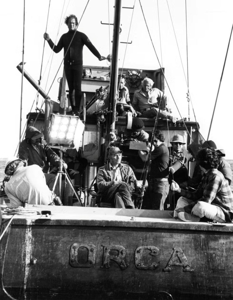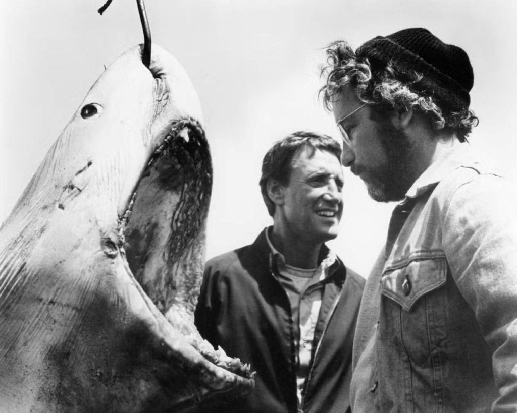 Spielberg fue contratado para hacerse cargo del proyecto. El rodaje del filme dio comienzo a principios de mayo del 74, en la ya citada población costera de Martha’s Vineyard. Como la filmación de la película requeriría la presencia de un enorme tiburón, se crearon tres costosas réplicas mecánicas del escualo, de 7 metros y medio de largo cada una. Se contrataron más de cuarenta técnicos de efectos mecánicos que se aseguraron de que su funcionamiento fuera correcto. El manejo de los tiburones mecánicos se antojaba dificultoso, ya que requería de unas catorce personas, y cuando las réplicas fueron introducidas en el mar para realizar las primeras pruebas, el material esponjoso que recubría al tiburón mecánico comenzó a absorber el agua y quedó con una apariencia hinchada.