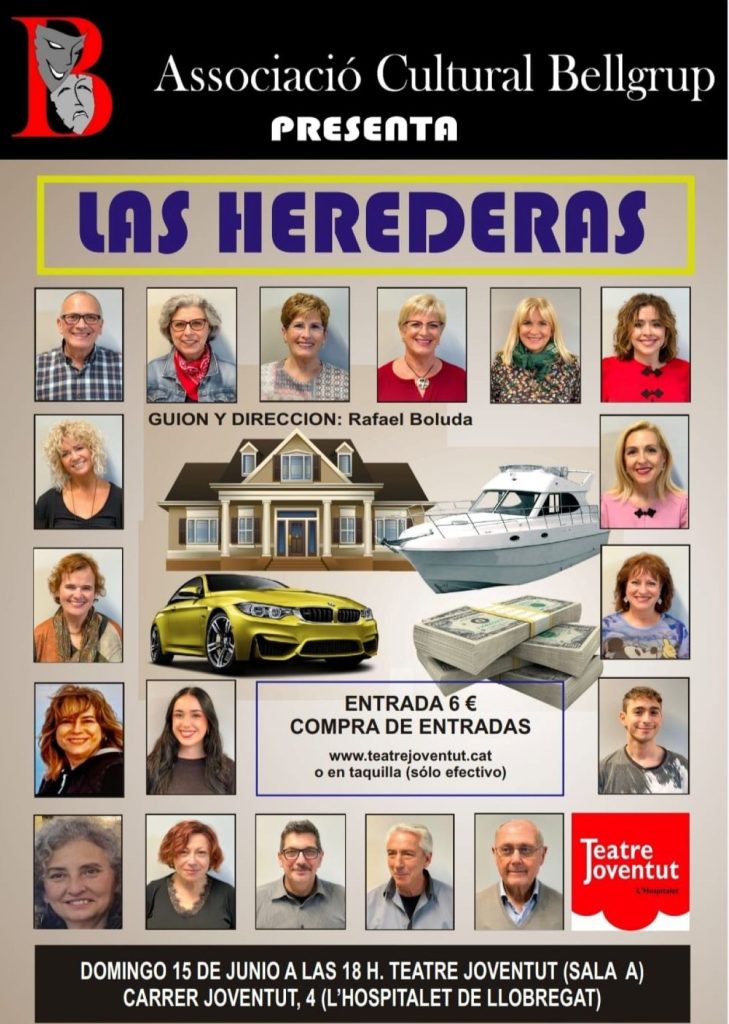 El Grupo teatral Bellgrup, estrena una nueva obra dentro de pocos días, ‘Las Herederas’, será el próximo 15 de junio en la Sala del Teatre Joventut. El público incondicional de la compañía de Bellvitge, tendrá una nueva oportunidad para disfrutar viéndolos subidos al escenario.