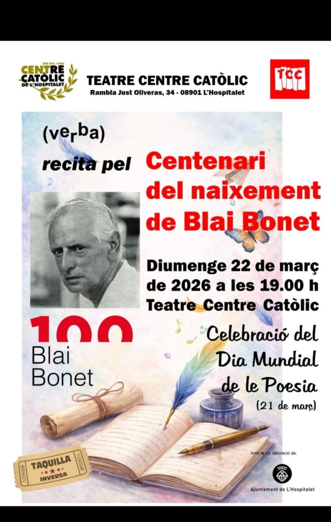 El grup Verba del Centre Catòlic de L’Hospitalet, va commemorar el dia mundial de la poesia amb un recital, recordant el centenari del naixement del poeta Blai Bonet, el passat diumenge, un acte ple sentiments, emocions i reflexions.