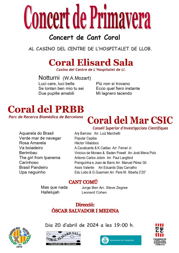 La Coral Elisard Sala del Casino del Centre, farà un concert a la seu social de l’entitat el pròxim 20 d’abril.