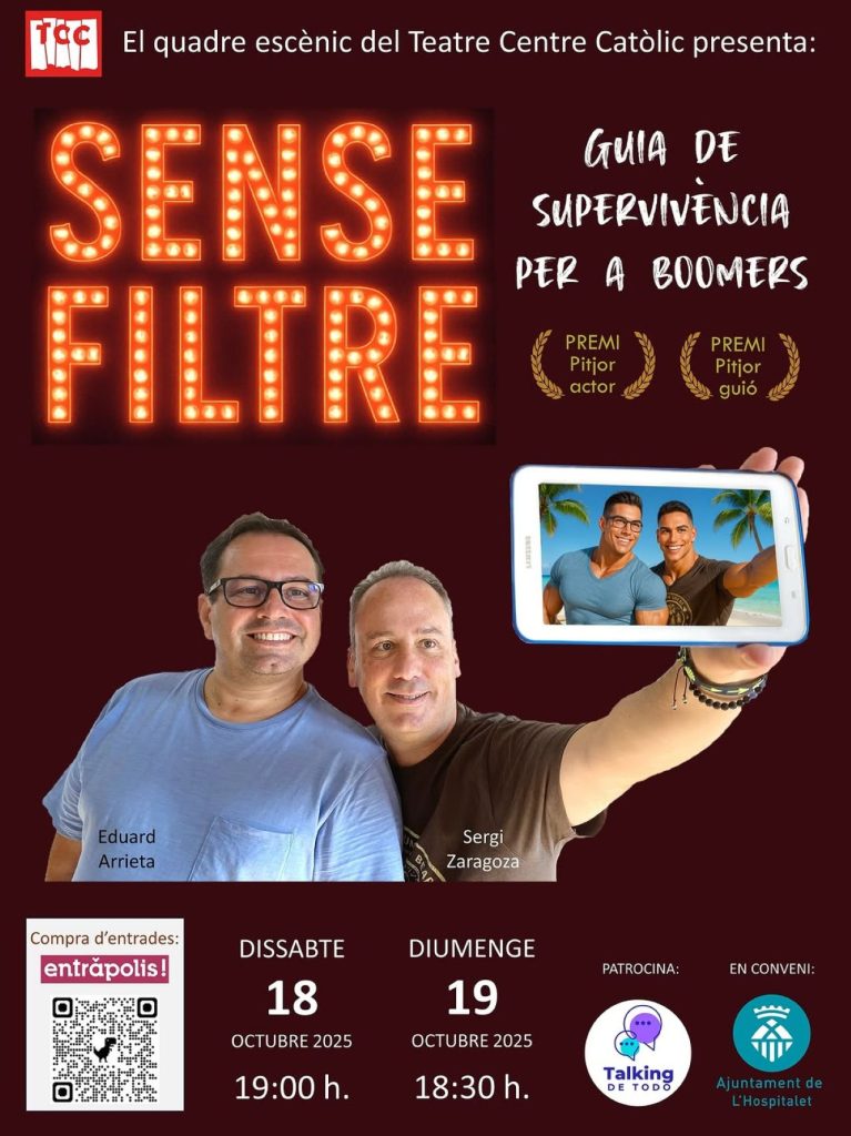 El Quadre Escènic del Teatre del Centre Catòlic de L’Hospitalet, también prepara novedades, y en octubre estrena «Sense Filtre», una obra de teatro que seguro que hará pasar momentos entretenidos de la vida misma a los espectadores.