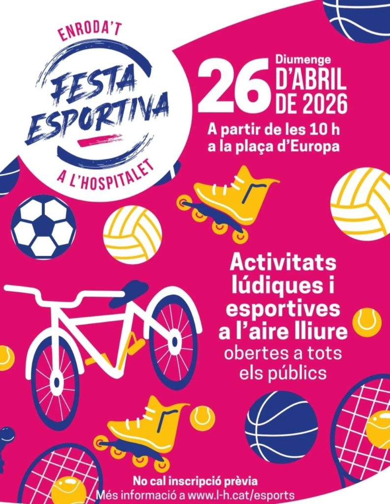 El deporte al aire libre volverá a llenar la plaza de Europa el próximo 26 de abril, en plenas Fiestas de Primavera, con Enródate, la fiesta deportiva de L’Hospitalet. Las actividades se realizarán de 10 a 14 horas e incluyen, como siempre, actividades para todos los públicos, como el tradicional paseo de vehículos sin motor, exhibiciones, talleres y una masterclass de zumba dirigida por los monitores de los polideportivos municipales.