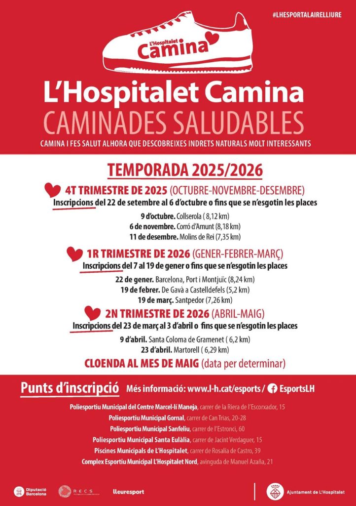 LH camina es un programa municipal abierto a la población adulta, cuyo objetivo es la práctica de una actividad física saludable como herramienta para prevenir enfermedades, mejorar la salud y conocer lugares interesantes y naturales. La inscripción es gratuita e incluye el desplazamiento en autocar hasta el punto de inicio de la caminata y la vuelta, el servicio de guía (a cargo de especialistas en senderismo), un seguro de accidentes y servicio sanitario. También cuenta con la participación de Voluntarios de L´Hospitalet.
