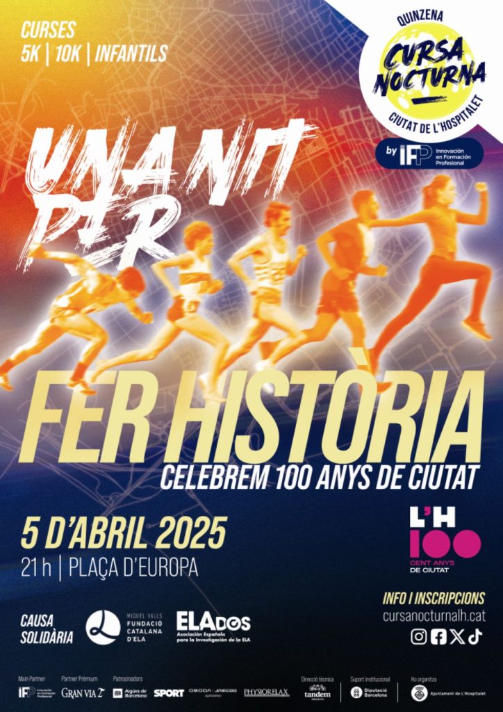 Este sábado, 5 de abril, la plaza de Europa volverá a acoger una noche mágica de deporte y fiesta con la 15ª Cursa Nocturna Ciudad de L’Hospitalet by iFP. Los corredores y corredoras saldrán a las 21 horas para participar en un acontecimiento que se suma a la conmemoración del centenario del título de ciudad.