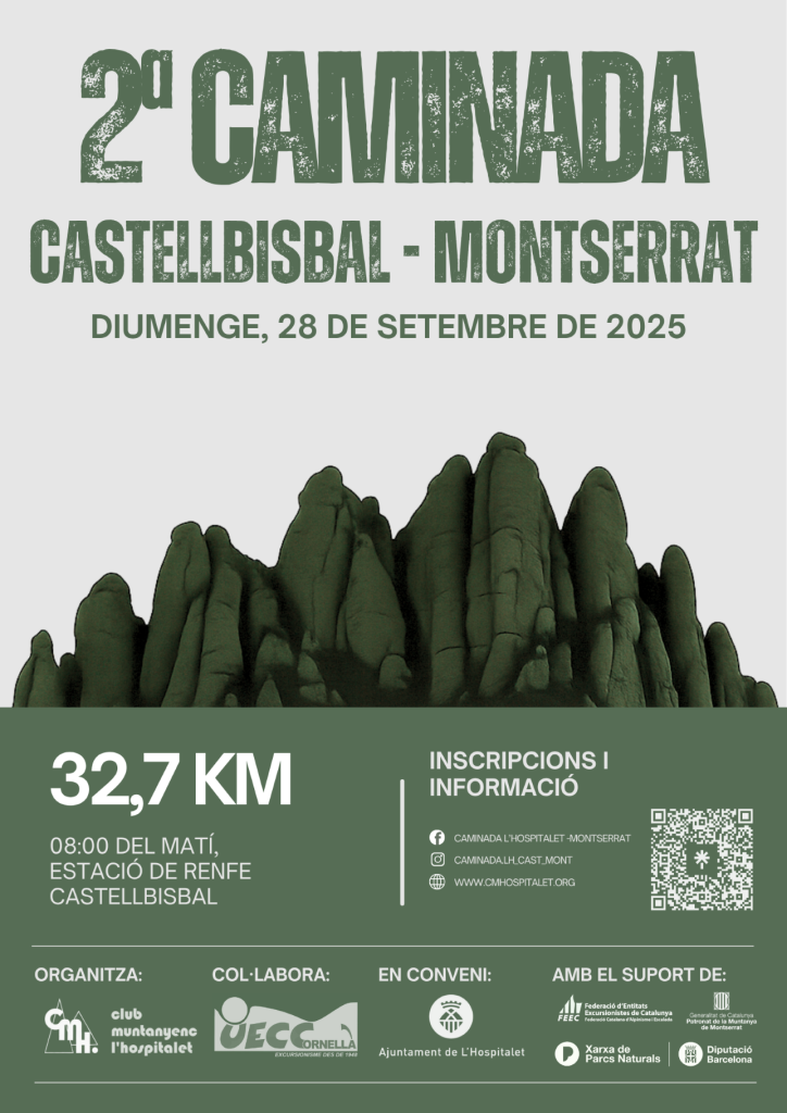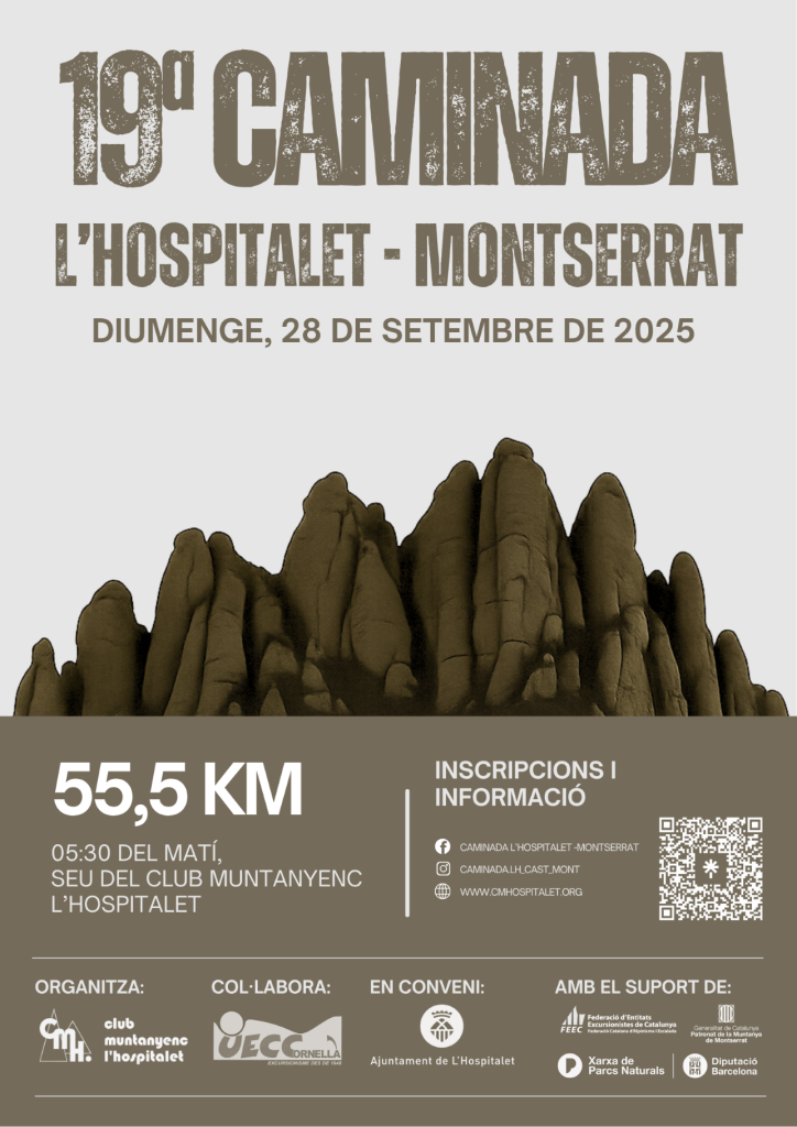 Aquest any 2025, el Club Muntanyenc l’Hospitalet torna a organitzar la ja clàssica caminada L’Hospitalet – Montserrat, així com la seva germana petita la caminada Castellbisbal – Montserrat. amb més Il·lusió i ganes que mai.