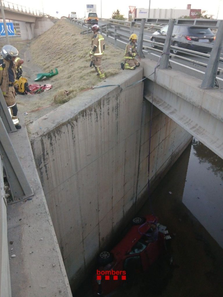 En el Prat de Llobregat los bomberos recibieron un aviso a las19.37h, de este miércoles, para poder rescatar a un conductor de 72 años que se había precipitado a un canal debajo de la A-2, pk 610, después de salirse de la vía.