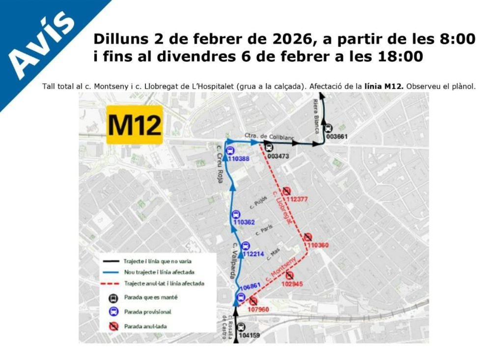 · Corte en la calle del 𝗠𝗼𝗻𝘁𝘀𝗲𝗻𝘆 y del 𝗟𝗹𝗼𝗯𝗿𝗲𝗴𝗮𝘁 con afectaciones a los buses M12 y LH2.