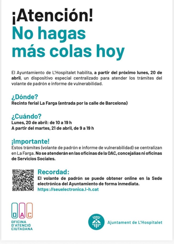 Se atenderán las personas por orden de llegada y se emitirán, si es preciso, los dos documentos: el justificante de padrón y el informe de vulnerabilidad. Si una vez hechos estos trámites, las personas requieren un trámite más complejo, se las derivará en la Oficina de Atención Ciudadana, ubicada también en La Farga, donde se reforzará el personal de atención.
