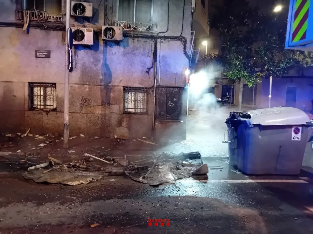 En la calle Juli Garreta, se incendió un vehículo en el interior de aparcamiento comunitario, que obligó a desalojar el edifico, y en la avenida del Torrent se quemaron tres contenedores, afectando la fachada de un bloque de pisos, que también fue desalojado.