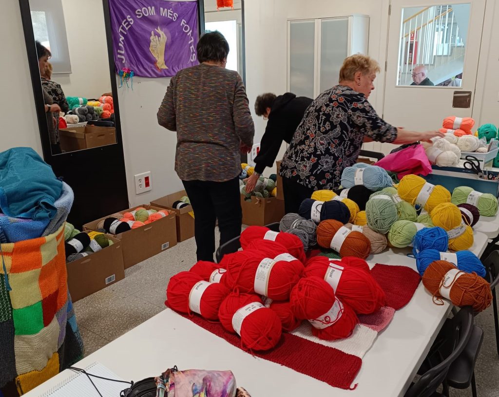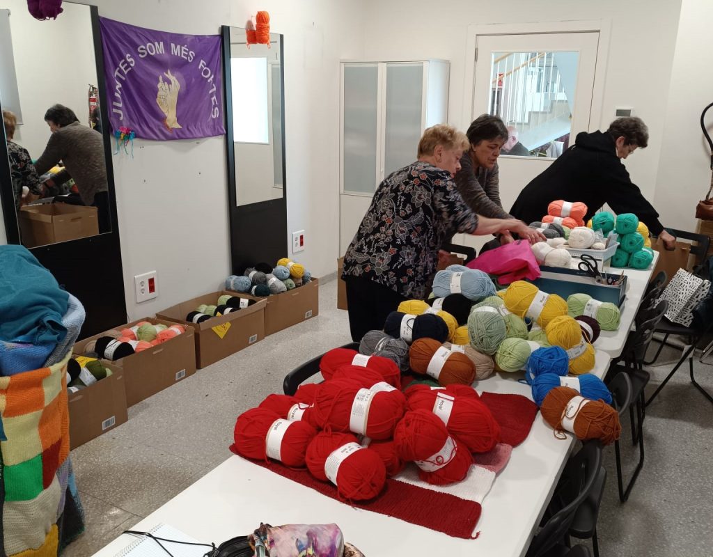 Las voluntarias de L’Hospitalet de ‘vida significativa’ , encabezadas por Mercè, tejen y confeccionan, en un local municipal, el del Casal de la Gent Gran de Ca n’Arús, que les ha cedido un espacio para que puedan seguir realizando esta magnífica iniciativa.