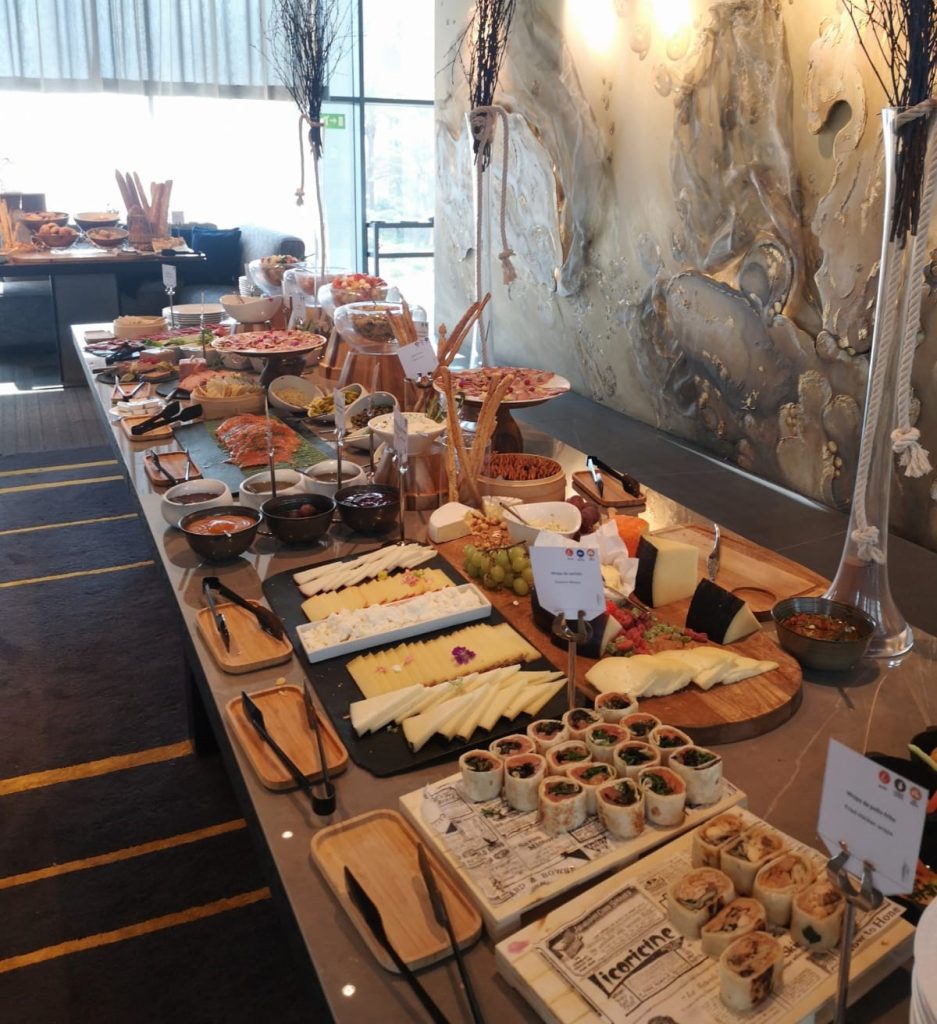 En el menú podrás encontrar desde una amplia estación de embutidos y quesos nacionales e internacionales, a delicias de pescado como salmón ahumado, langostinos y ostras, canelones de generosa selección de arroces y carnes, así como huevos cocinados a tu gusto.
