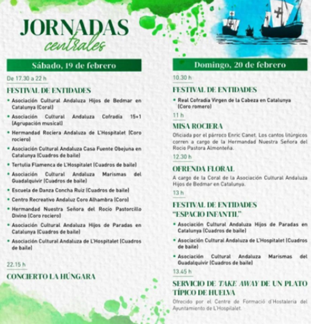 Unas jornadas que este año rinden homenaje a la provincia de Huelva, a sus fandangos, tradiciones y gastronomía. Y como siempre no faltará el Festival de entidades, la tradicional Misa Rociera, la ofrenda floral y la actuación de los cuadros infantiles.