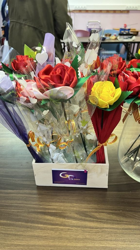 Les Dones del Gornal a L’Hospitalet, ya tienen preparado todos los elementos de decoración, flores y rosas, realizadas por ellas misma para celebrar la Diada de Sant Jordi en el estand que montarán en el passeig de Carmen Amaya.