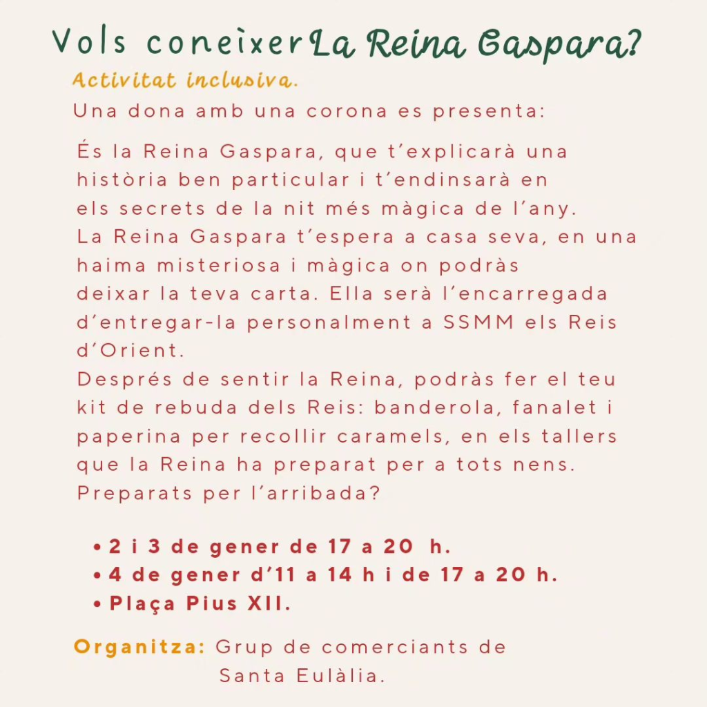 L'Hospitalet Nadal 2023 a L’Hospitalet: Santa Eulàlia es vesteix de festa | Programa d’activitats . Redacción 15/12/2023 A Santa Eulàlia tenen un grapat d’activitats preparades perquè gaudeixis d’aquest Nadal: Nadal 2023 a L’Hospitalet: horaris i programació de les activitats per a grans i petits Nadal 2023 L’Hospitalet: La Fàbrica de Joguines y La Fàbrica de Caramels | Horarios y reserva de entradas Nadal 2023 a L’Hospitalet | El Circ de Nadal, El Campament Reial i el Jardí dels Desitjos: horaris i dies Etiquetas L'HospitaletNavidad 2023 a L'Hospitalet