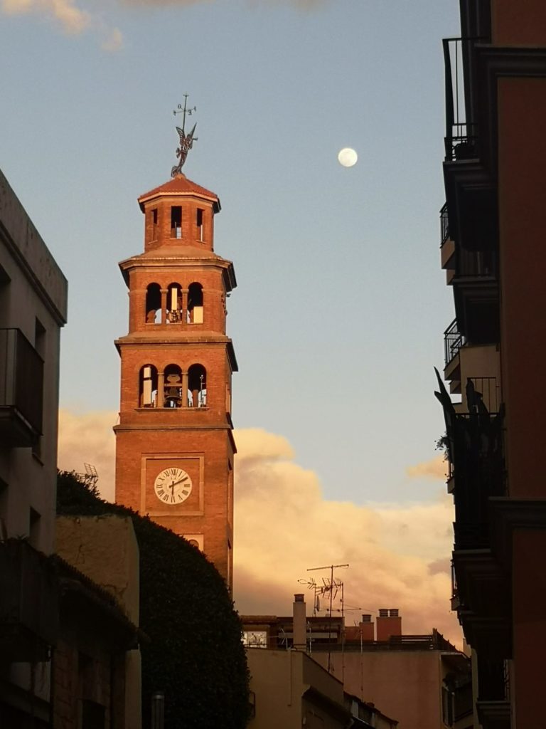 Las imágenes fueron captadas este lunes por la tarde hacia las 18:00h desde la calle Major del Centre de L’Hospitalet, por Montserrat García Balagué que nos ha cedido las fotografías, enfocando el campanario de la parroquia de Santa Eulàlia Mèrida.