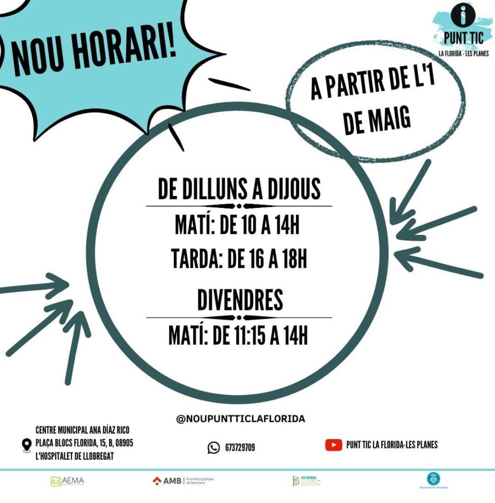 El punto TIC (tecnologías de la información y la comunicación) del Centro Municipal la Florida – Ana Díaz Rico ampliará su horario de atención al público a partir del mes de mayo, y abrirá a jornada completa, de 10 a 14 h y de 16 a 18 h, gracias a la buena acogida que ha obtenido entre el vecindario. Desde que se puso en marcha en enero, este punto ha atendido a 697 vecinos y vecinas del barrio.