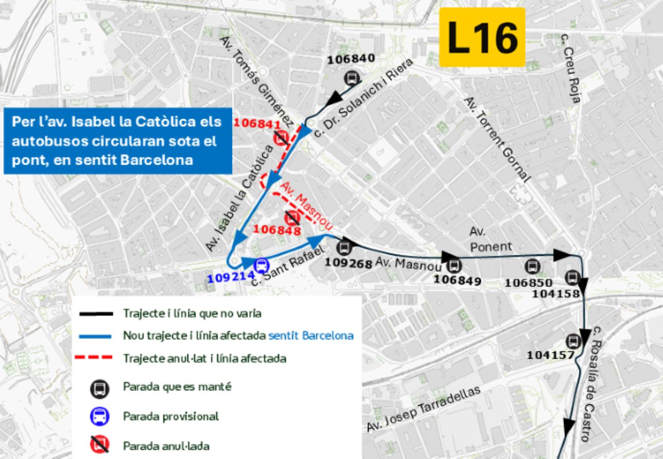 Atención! Cambio de recorrido de la línea de bus M14 y L16 en L’Hospitalet