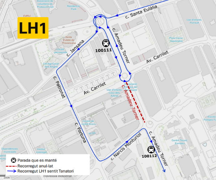 A partir del lunes 29 de abril de 2024 y hasta nuevo aviso, se modifica el recorrido habitual en la calle Amadeu Torner de l’Hosptitalet de Llobregat sin afectación en paradas.