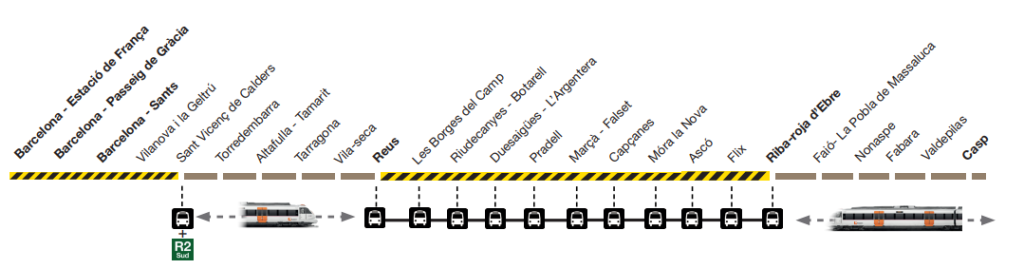 - Tram Reus – Riba Roja d’Ebre: Servicio alternativo por carretera