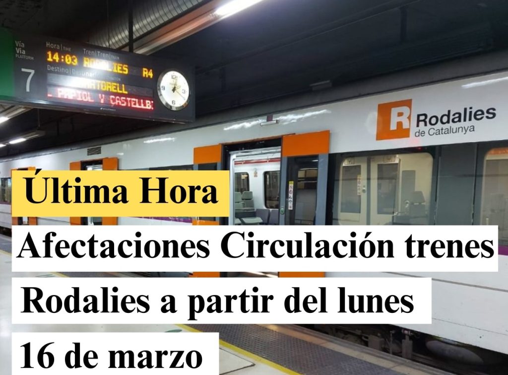 Entre el 16 de marzo y el mes de junio, Adif ejecuta obras de mejora de la infraestructura entre Garraf y Sitges que implican la circulación en vía única en este tramo. Esta restricción de la capacidad operativa comporta la modificación de la oferta de los trenes Regionales del sur de las líneas R13, R14, R15, R16 y R17, así como de los trenes de la línea R2 Sur que prestan servicio en este trayecto.