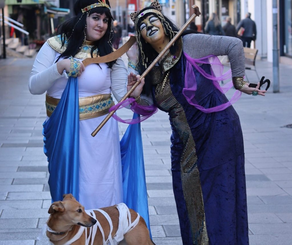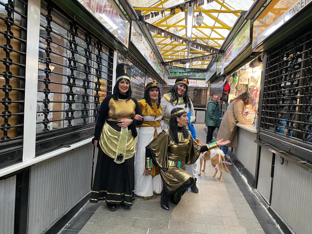 Tarde, noche de Carnaval, en Catalunya, y en L’Hospitalet también. Los barrios de la ciudad vivieron intensamente las rúas que se organizaron. Y los mercados municipales, el sábado también se sumaron a la fiesta. En este caso el Mercado de Collblanc recrearon sus disfraces en la época egipcia.