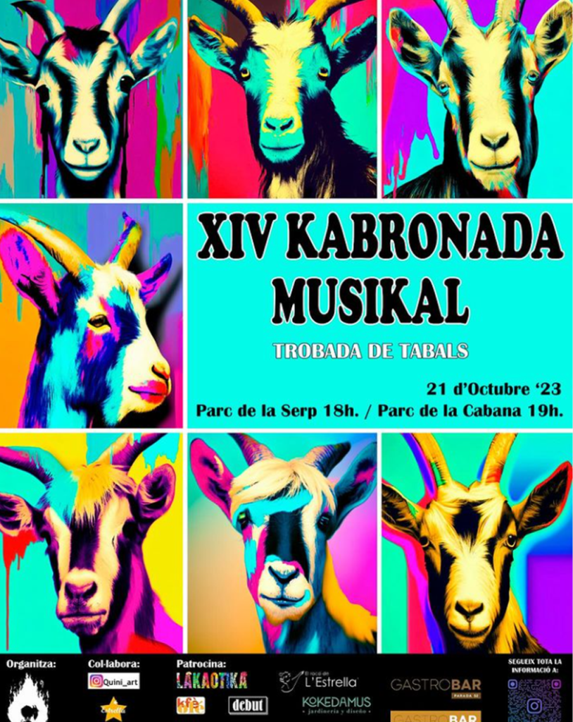 Dissabte 21 d’octubre a partir de les 18 h al Parc de la Serp es trobaran 20 colles de tabaleres i tabalers per desfilar pel barri de Sant Josep fins al Parc de la Cabana, en la ‘Kabronada Musikal’.