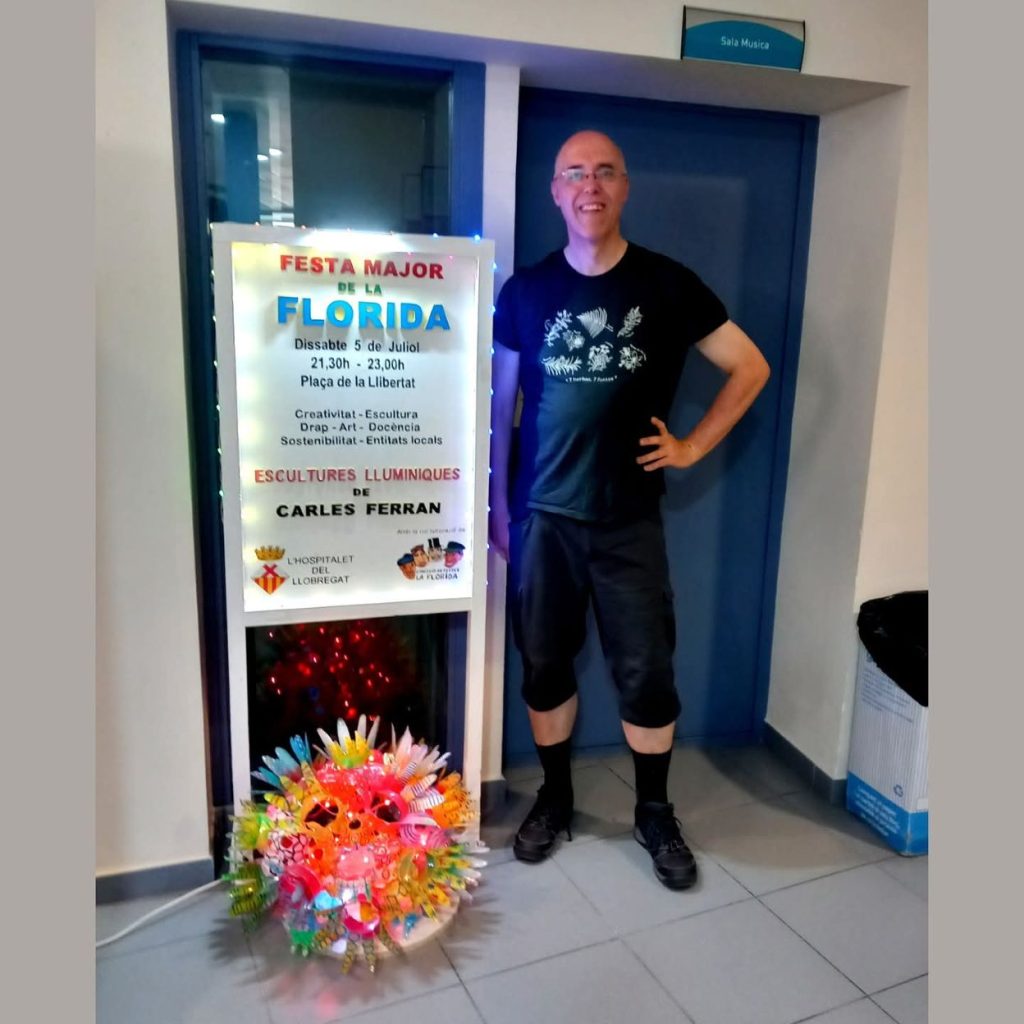 Este sábado 5 de julio de 21:30h a 23h, y dentro de las actividades de la Festa Major de la Florida, se expondrán en la plaça de la Llibertat gran parte de las esculturas lumínicas de Carles Ferran. El artista vive en el mismo barrio de la Florida desde hace 10 años, y tiene un conjunto de esculturas almacenadas en el 58 la calle Font. Se trata de la parte central de su creación que incluye también una colección de pinturas y esculturas.