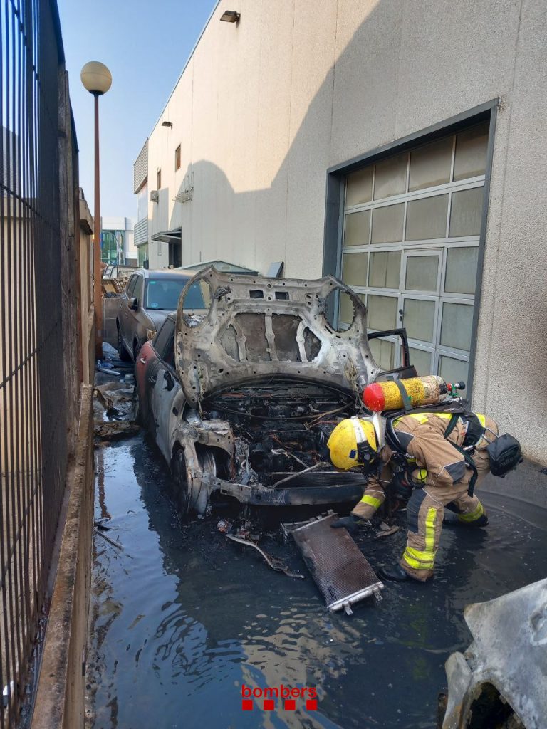 Cinco dotaciones de Bombers de la Generalitat, acudieron a las 18:19h de este martes, a una nave industrial de alquiler y venta de coches, de Sant Boi de Llobregat, para sofocar un incendio, que calcinó tres vehículos.